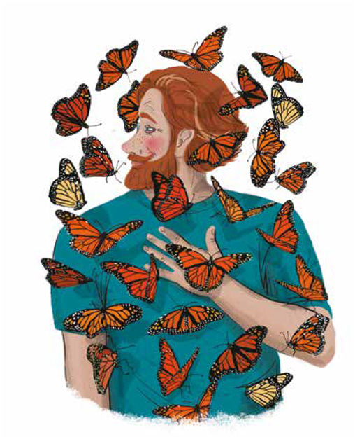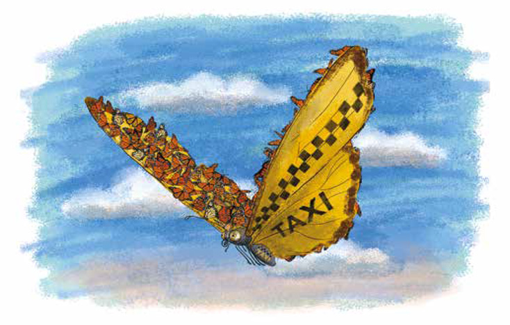 – Друзья мои, только представьте: в небе летит огромная «бабочка-такси», которая подвозит ярких, нежных монархов! Кстати, по дороге к ним могут присоединиться ослабленные перелётные птицы, чтобы посидеть, передохнуть.