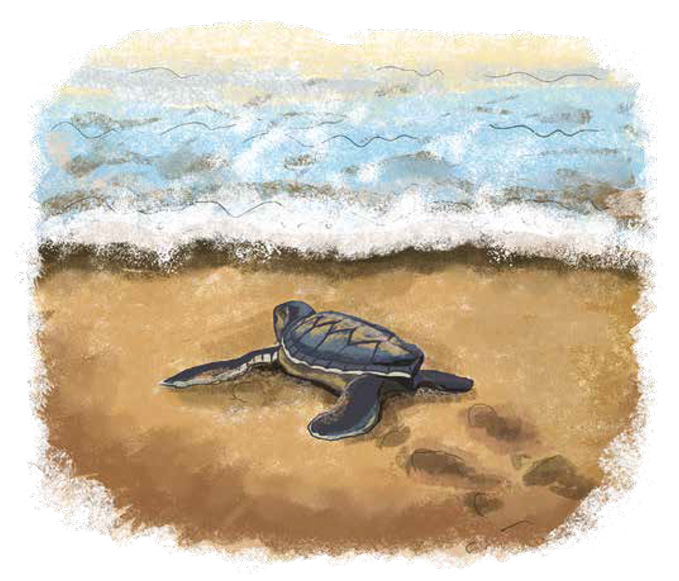 Черепаха повела головой. Она слышала, что рядом плещется море, чувствовала его запах и тянулась к спасительной влаге.