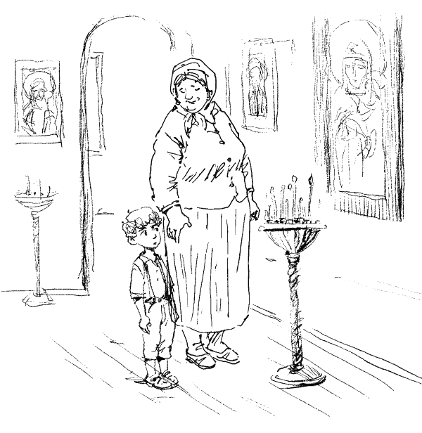 На улице Лёвушка едва успевал за размашистым шагом бабушки, сердце его трепетало от тревожного ожидания несметного богатства в виде целого рубля и родительской выволочки за самовольную отлучку. Конечно, ради рубля можно перетерпеть отцовский ремень, и бабушка вроде обещала заступиться, но думать о том, что произойдёт, уже было некогда, потому что через три улицы путешествие закончилось у порога большого каменного здания с золочёными крестами на луковичных башнях.