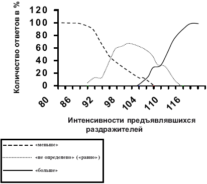 где Σg — сумма всех ответов «равны». Верхний разностный порог будет, очевидно, равен S0 – N, где N — величина нормального раздражителя, а нижний разностный порог будет равняться соответственно Sи– N.