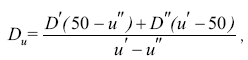 где D' и D˝ – найденные в опыте значения раздражителей, ближайшие к лежащему между ними искомому значению Du. При этом и' – та частота суждений данного рода, которая вызывается раздражителем D' и превышает 50 %, а и˝ — та частота суждений данного же рода, которая соответствует раздражителю D» и является меньшей, чем 50 %.