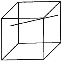 Рис. 1.18. Линия, пересекающая угол куба Неккера, кажется слегка изогнутой, хотя фактически она прямая. Она кажется такой же изогнутой и тогда, когда куб переворачивается по глубине. Из этого следует, что иллюзионный изгиб линии не является результатом воспринимаемой глубины. Но если сделать светящуюся модель куба, направление изгиба линии будет меняться с каждым изменением ориентации куба