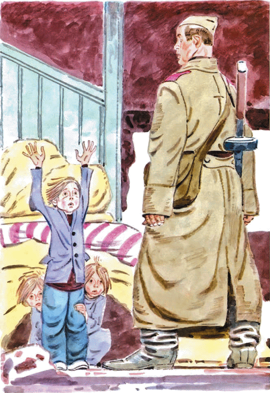 Закинув автомат за спину, он отбросил верхние узлы и увидел пещерку среди вещей. В ней, прижавшись друг к другу, лежали трое ребятишек – два совсем маленькие, года по четыре, третий лет семи. Худенькие, как тростинки. В сумраке подъезда были видны их бледные, осунувшиеся личики. Тот, что постарше, мгновенно вскочил, оттолкнув маленьких, и поднял руки вверх.