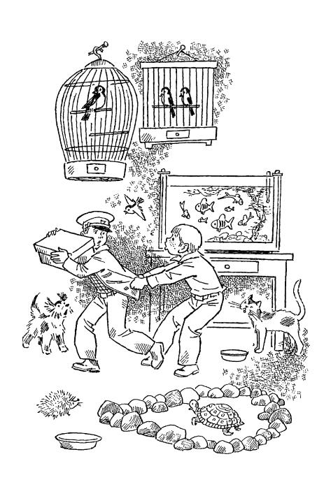 Боря крутил головой и оглядывался. Из клеток, подвешенных у окна, попискивали какие-то птички, в аквариуме, как трассирующие пули, носились красные и голубые рыбки, а рядом с ним, в террариуме, медленно двигалась черепаха в панцире, похожем на футбольный мяч, сшитый из кусков…