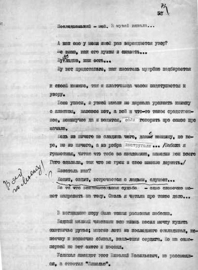 Страница повести «Оренбургский платок» с пометкой В.П. Астафьева. Рукопись.