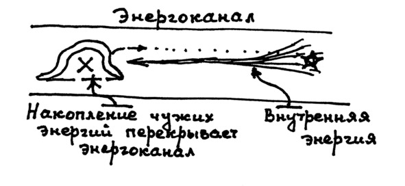 При застое поступает сигнал о неиспользовании энергии, тогда внутренний источник закрывается, поступление энергии прекращается (рис.4). Поэтому жить следует просто, стремиться максимально использовать то, что есть.