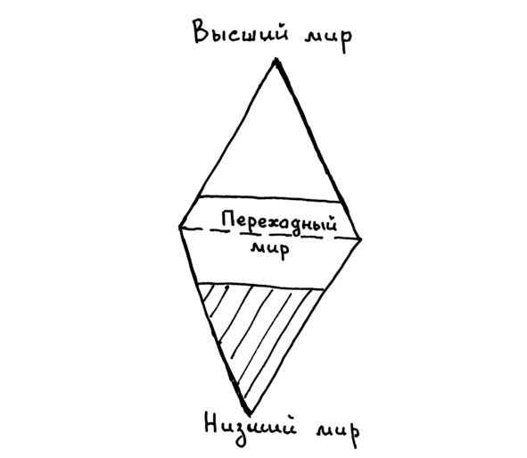 Одновременно происходит нисхождение высших сил, которые на сопротивляющихся тоже оказывают давление. Они как Солнце, жар которого без любви выдержать невозможно. Поэтому для многих людей, пребывающих в переходном состоянии, возникает ситуация выбора, какой мир выбрать: низший или высший (рис.14). Такова особенность нынешнего периода на Земле. Невозможно будет находиться меж двух огней, произойдёт полное разделение на два мира.