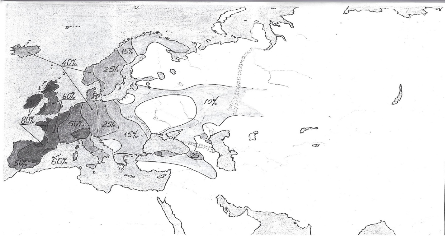 Заметьте, арии, но не арийцы! Фюрер и его идеологи жестоко ошибались относительно родовых корней немецкого населения. Дело в том, что на ту пору в науке существовала убежденность, что арии пришли в Европу со своей восточной прародины и принесли нам индоевропейские языки и некоторые блага той цивилизации. Но потом оказалось все наоборот: прародина ариев была именно в Европе и, причем Восточной, что и подтвердили исследования ДНК, как современного населения, так и ископаемых образцов. К потомкам ариев в Германии относятся только их онемеченные наследники в Восточной Германии и в Восточной Пруссии, мужское население которых во многом относится к гаплогруппе R1a, но при этом является этническими немцами.