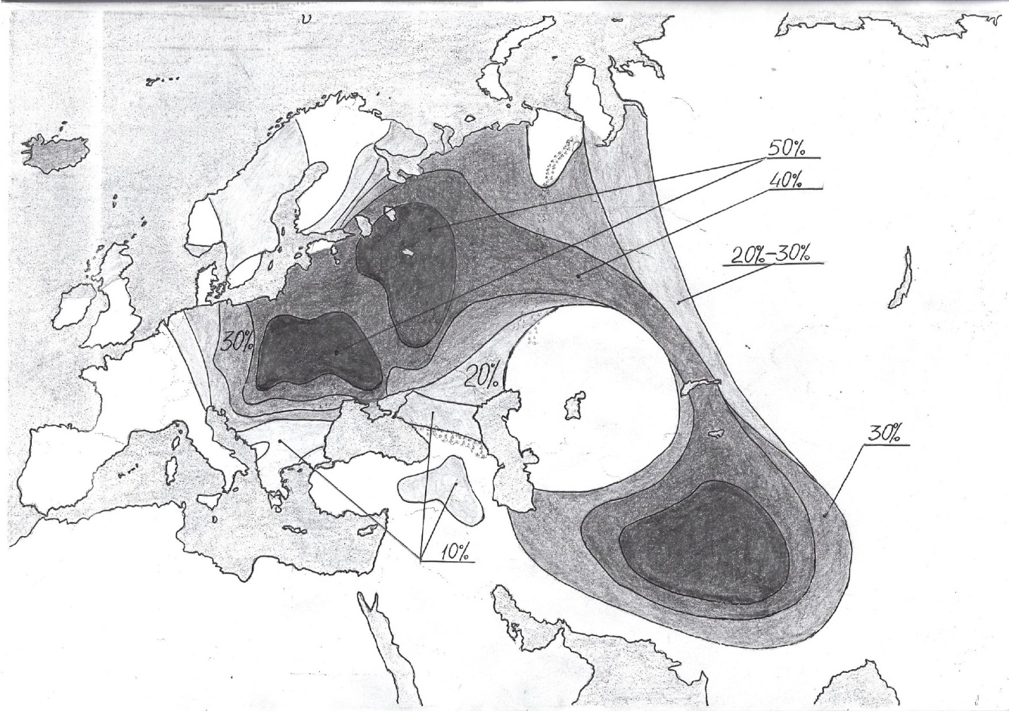 В истории случилось так, что «патриархи» с метками R1a и R1b со временем постепенно из поколения в поколение дали многочисленное выжившее потомство. Сегодня мы – восточные славяне – потомки, в основном, праотца R1a, являемся как бы двоюродными братьями западноевропейцам, являющихся, в свою очередь, в основном, потомками праотца с меткой R1b. Далее по распространенности гаплогруппп следует в «нашей» зоне группа N1c1 – это потомки финно-угорских (точнее, уральских) родов, гаплотипы I1, I2a, G2a и частично E1b1 относятся к потомкам автохтонного коренного населения Европы.
