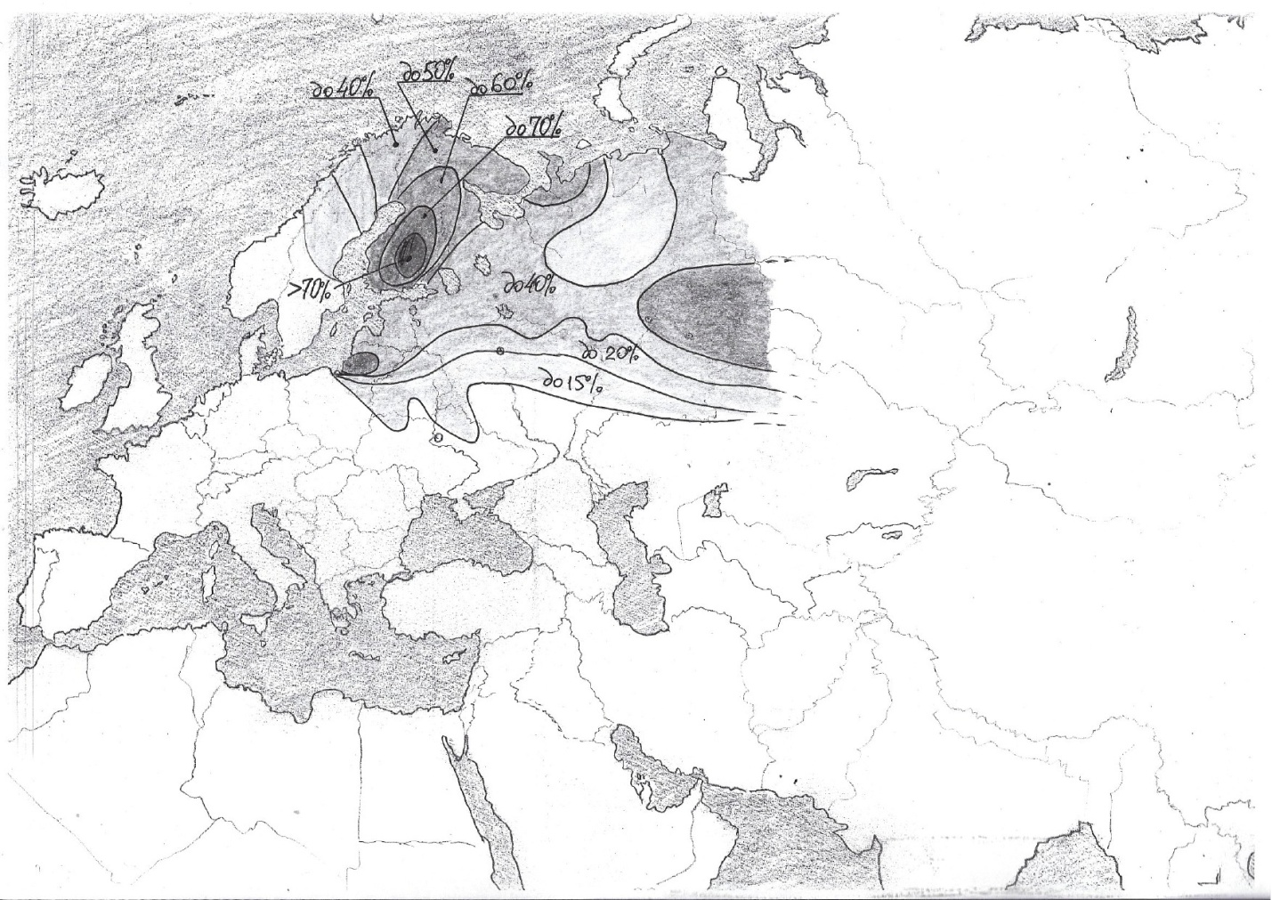 Род N1а1 относится к финно-угорским народам, он выделяется из общей предковой группы N, обитавшей 20 тысяч лет назад в Западной Сибири и частью своей за тысячи лет миграций добирается до современной Финляндии не ранее, чем 2500 лет назад. То же касается и Прибалтики: предполагаемая абсолютным большинством ученых принадлежность культуры ямочно-гребенчатой керамики именно финно-уграм оказалась несостоятельной: до сих пор не обнаружено ни единого ископаемого образца той эпохи финно-угорской гаплогруппы N; первые отмечены только с датировкой порядка 2000 лет назад [15]. На территории России к финно-угорской языковой (а теперь и генетической) группе относится большая часть коренного населения Мордовии, Удмуртии, Мари, Коми, народы Севера. Вспомним и летописные народы, оставившие свои имена в топонимике русского Севера: мурома, мещера, чудь, весь, и т.д. Процесс взаимной ассимиляции этих народов с русскими был столь высок, что сегодня до 20% этнических русских (в основном, севернее Москвы) по генетике относятся к финно-угорской группе. Но не по языку, менталитету, воспитанию, по духу и, в конце концов, не по паспорту. Получается, действительно: копни русского – найдёшь финна. Но не монголо-татарина, как считалось ранее: монгольское завоевание 13-15 веков не оставило в наших генах своих следов, то есть,