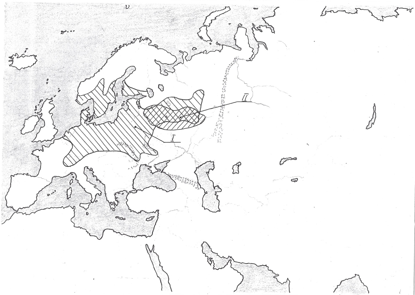 Схема 2. Культура шнуровой керамики-боевых топоров (I) и Фатьяновская культура (II) (составлено автором – Овчинников А.Н.)
