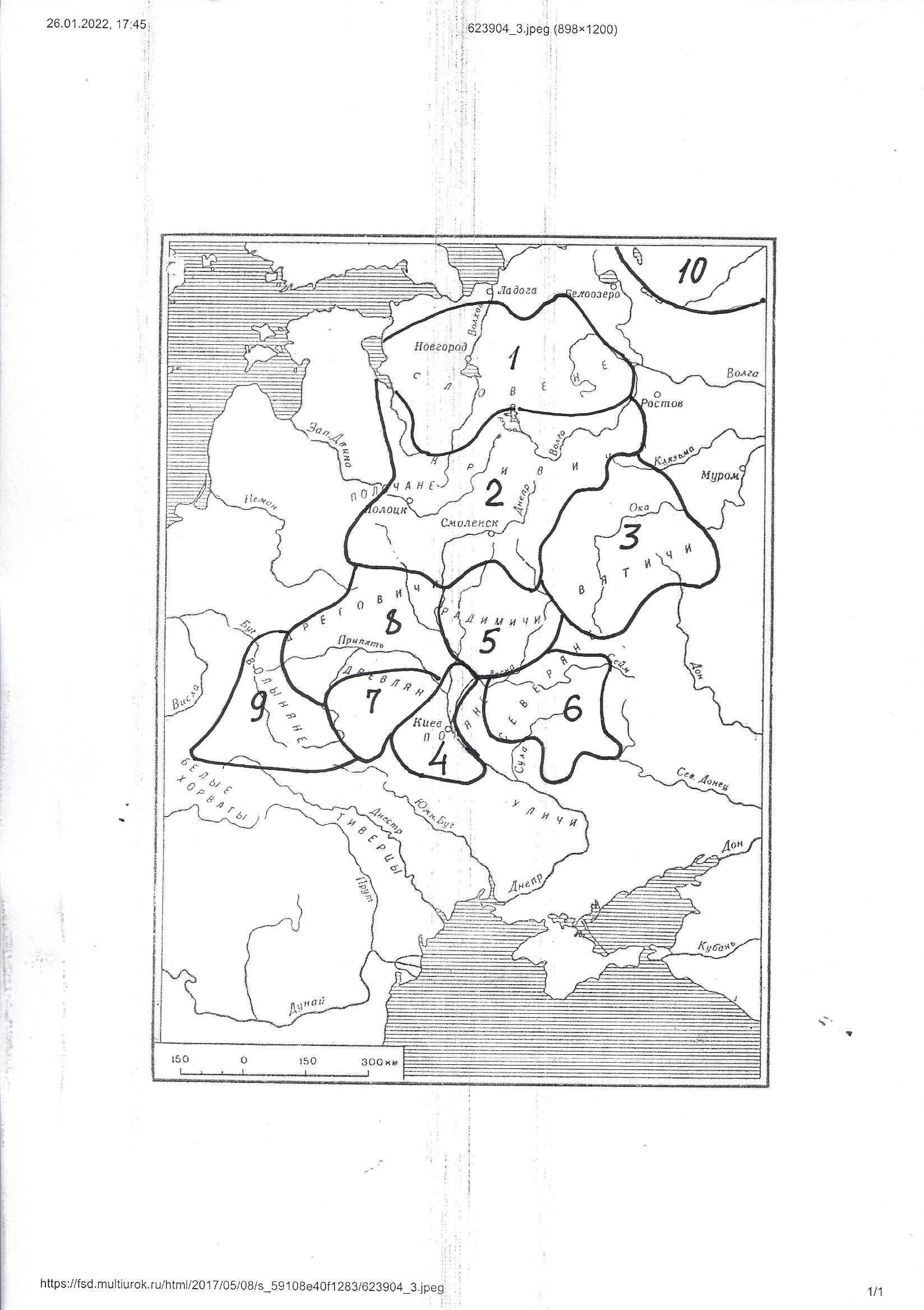 1. Словене; 2. Кривичи; 3. Вятичи; 4. Поляне; 5. Радимичи; 6. Северяне; 7 Древляне; 8 Дреговичи; 9. Волыняне; 10. Чудь (угорские племена).