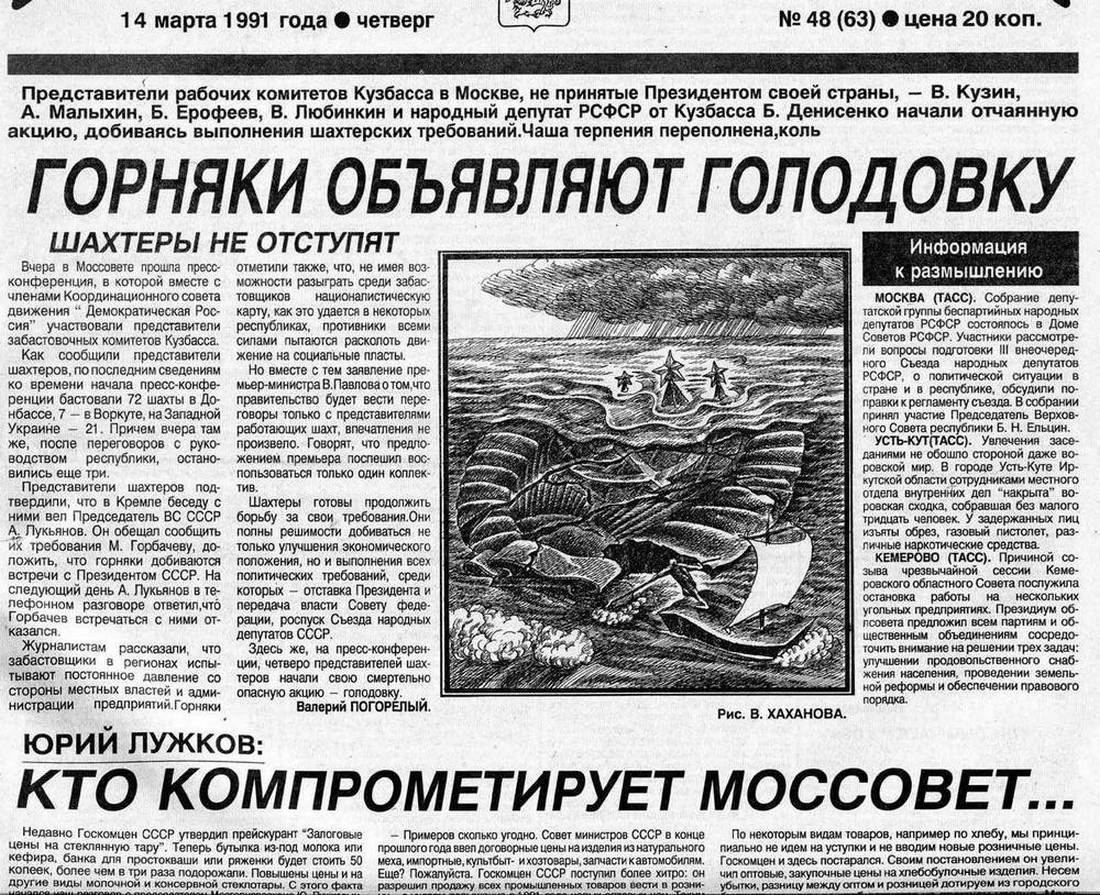 Забастовки шахтёров были тогда грозным оружием взбунтовавшегося пролетариата против политики КПСС.