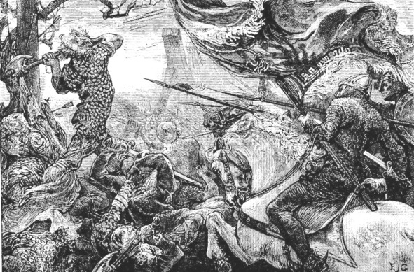 Король Гарольд в бою у Гастингса. Гравюра XIX века