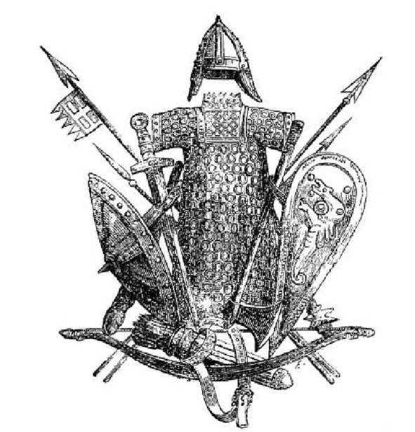 В качестве основного доспеха использовались кольчужные рубахи («хауберки») длиной до колен и с рукавами до локтей. Некоторые хауберки дополнительно могли быть обшиты железными пластинками. Голову защищал конический железный шлем. И всадники и пехота имели щиты – круглой (у пехоты) и каплевидной (у кавалерии) формы. Большинство воинов имели прямые мечи и копья. Легкая пехота использовала пращи и дротики. Лучники и арбалетчики составляли значительную часть войска.