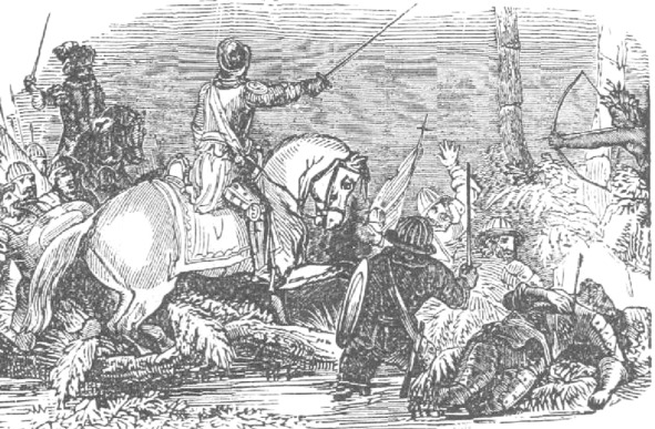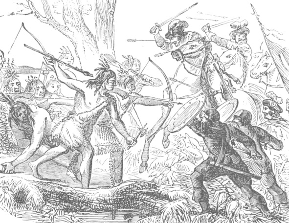 Схватка отряда де Леона с индейцами. Гравюра XIX века.