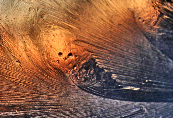 Таким образом, парейдолия для нас теперь не просто разновидность зрительных иллюзий, но еще и прием, позволяющий иллюзорные объекты превращать в художественные образы. Теперь наша задача проследить, как работает данный прием. Приведу вам следующий пример, связанный с парейдолией. Однажды зимним вечером я сфотографировал на замерзшем окне морозный узор.