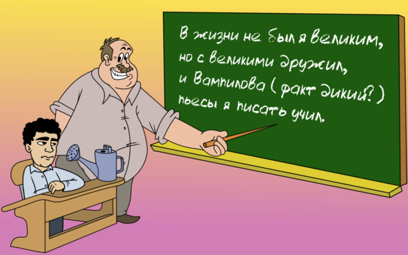 Мы студенты первокурсники уже народные артисты – и я начал учить тогдашнего начинающего драматурга.