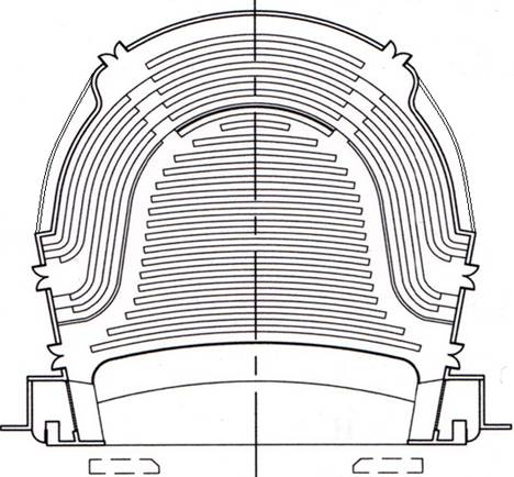 Поверхности дальней от сцены стены и поверхности ограждений ярусов вогнутые (рисунок 3.2).