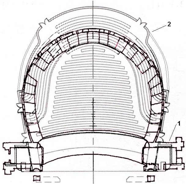 При вогнутой поверхности интенсивность отраженной звуковой энергии от таких стен и от ограждений ярусов убывает значительно медленнее, чем при сферическом распространении, т.е в исполнительской зоне и в первых рядах партера. Такие отражения при одновременном большом запаздывании, особенно из ложи президента (задняя стена ложи расположена акустически существенно дальше от сцены, чем задняя стена на ярусах), могут вызвать весьма нежелательное, заметное эхо на сцене и в первых рядах партера. Это вполне возможно в базовом варианте еще и потому, что исполнительская зона певца (как и оркестра) акустически не сбалансирована, в нее не поступают интенсивные отражения звука оркестра и звука собственного голоса певца.