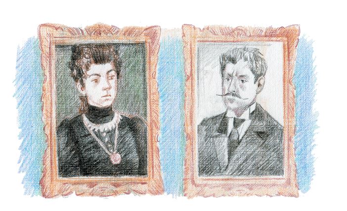 Над диваном – портреты дедушки и бабушки в молодости. У дедушки густые усы, бритый подбородок упирается в накрахмаленный воротничок с отогнутыми углами. Бабушка – в закрытом черном платье, с медальоном на длинной цепочке. Ее высокая прическа доходит до самой рамы.