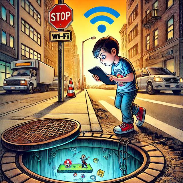 – Это то что -вмешался в родительский разговор младший сын Лучик – у нас в классе Джон, когда идет в школу, то держит перед собой айпад. Однажды угодил в открытый уличный люк. Дорожные ремонтники забыли поставить ограждение. Хорошо хоть там не так много было воды. Набил большую шишку на лбу, сломал ребро, ногу и испачкался в уличной грязи, которая натекла в канализацию. Говорили, что от него ужасно плохо пахло.