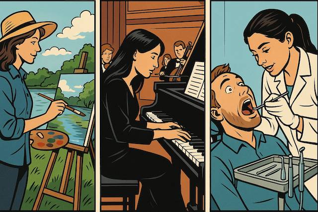 – Как что? – ответил отец- твоя тетка стала профессиональной художницей. Мы же были недавно на ее персональной выставке. А другая тетка играет в Нью-Йоркском симфоническом оркестре и еще выступает с сольными концертами.
