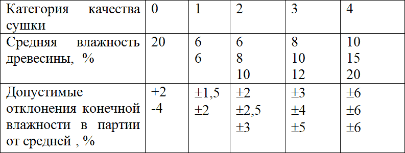 7.1. Все доски абсолютно сухие. Такие доски можно получить, если сушить согласно методик по определению влажности при температуре 102 град до постоянного веса, удалив всю связанную влагу. В этом случае при механической обработке такие доски впоследствии наберут влагу до эксплуатационной. Это сильно повлияет на шероховатость и чистоту поверхности. Такая технология создает значительные неоправданные затраты на сушку и передержку древесины, так как процесс вытеснения оставшейся влаги очень длительный.