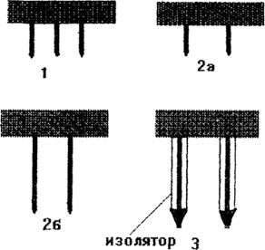 1 – трехигольчатый, 2 – двухигольчатые, 3 – с изолированными электродами.