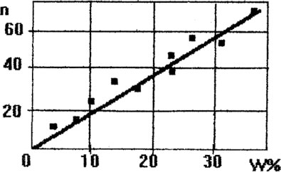 По полученным усредненным точкам в координатах W% и П строится график. Пример такого графика представлен на рис. 9.4.