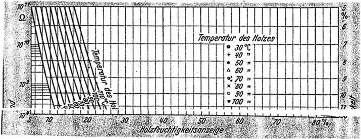 В диапазонах от 0–30 % и 0–150 % влажности электрические свойства древесины изменяются от проводника до диэлектрика по мере уменьшения влажности.