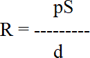 Формула измерения сопротивления показывает зависимость сопротивления от таких параметров как удельное сопротивление древесины р, площадь поверхности электродов S, расстояние между электродами d.