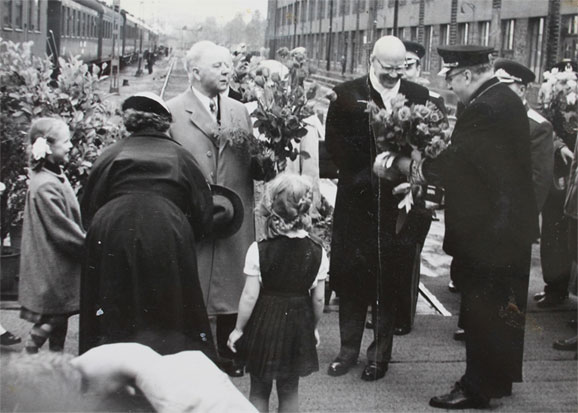 Ковровая дорожка, улыбающиеся лица встречающих. Даже трудно разобрать финны ли это? Но советским трудящимся в СССР было приятно посмотреть, как радостно встречают одного из видных деятелей партии в капиталистической стране.
