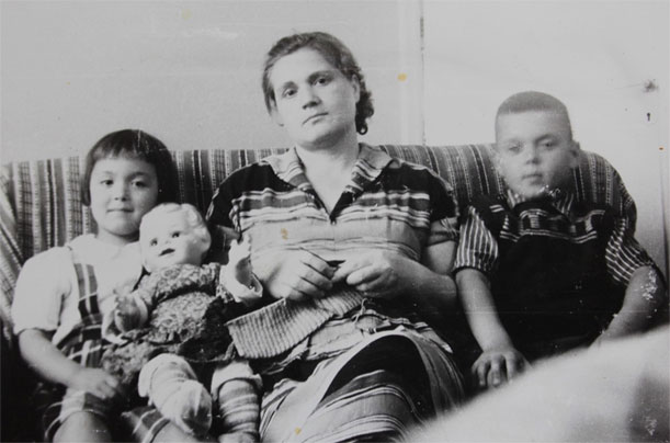 Сестра Лена с куклой, братом и мамой.