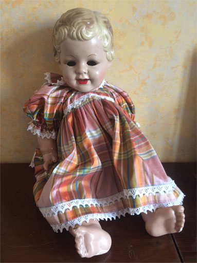 В результате длительной эксплуатации кукла изрядно постарела и повредилась.