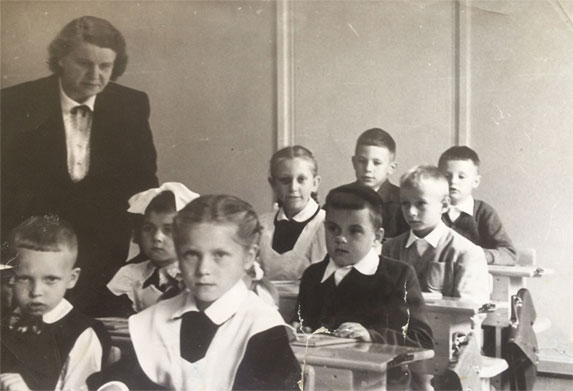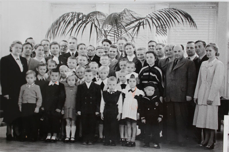 Первые ученики, учителя и родители при открытии советской школы при посольстве СССР в Финляндии.