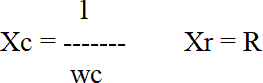 Xc – реактивное сопротивление на частоте "w"