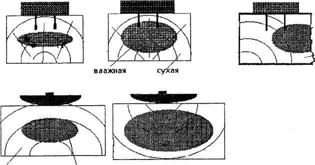 Кроме того возникает сложность в создании однородного электромагнитного поля для массового производства таких Влаг. На рис. 15.4 показано графическое представление взаимодействия неоднородного электромагнитного излучения датчика в неоднородной влажностной среде.