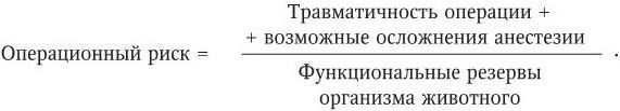 Из формулы следует, что операционный риск тем ниже, чем менее травматична операция и меньше вред, нанесенный анестезией, и чем выше функциональные резервы организма животного.