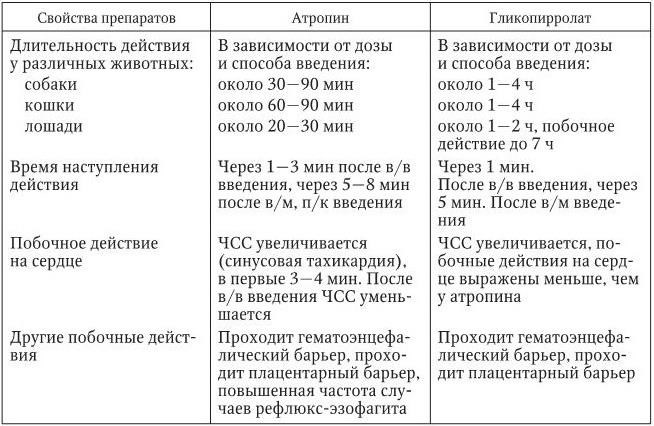 Различия между применяемыми в практике холинергическими средствами атропином и гликопирролатом (Robinul) представлены в табл. 4.