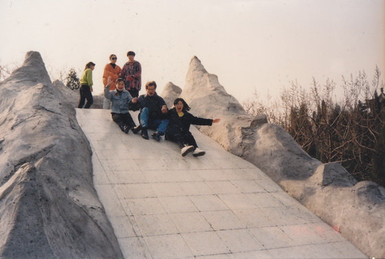Ехали по двое, по трое довольно медленно, потому что боялись потерять кого-нибудь по дороге, переговариваясь в ходе движения. Только через час мы, наконец, доехали до парка Таожаньтин. Был апрель, цвели деревья. Мы гуляли по парку, фотографировались, ребята вытащили и меня кататься на горке. Как маленькие, катались на детских электромобилях и на каруселях. Везде выказывали такую заразительную детскую непосредственность, что порой заражали и меня. Не было никакой возможности напускать на себя серьезность почтенного профессора.