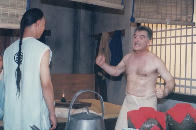 Работали мы летом, но пока съемки происходили в Пекине, да еще вечером, это было достаточно сносно, когда же пришлось отправиться в Сучжоу, который находится значительно южнее, а температура там в июле даже в тени превышала 40 градусов, съемки превратились в страшную муку. Бетонный павильон, в котором проходили съемки, за день нагревался так, что внутри было намного хуже, чем в парилке. Черная сутана священника, которая была надета прямо на голое тело, моментально намокала от пота до такой степени, что во время перерывов я снимал ее и выжимал из нее пот. Единственный на всю съемочную группу небольшой вентилятор фактически не мог ничем помочь, даже когда во время перерывов удавалось пробиться к нему среди толпы работников группы и других актеров.