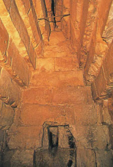 Этот бункер выдержал землетрясения сокрушительной силы, которая разрушила саму пирамиду (рис. 62). Устояла и камера внутри пирамиды, представляющая собой сводчатые стены и потолок из выступающих плит (рис. 56). Эта впервые выполненная технология ступенчатого свода в истории строительства, в дальнейшем применялась и совершенствовалась в Древнем Египте. Она прошла испытания не только землетрясением, но и колоссальным весом этой пирамиды.