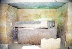 А вот у фараона II династии Хетепсехемуи в гробнице длиной 85 м – 58 подземных комнат, заполненных оружием, украшениями, тканями, кувшинами с едой и питьем. В центре находится погребальная комната с гробом покойного, а около гробницы установлена стела с именем усопшего.