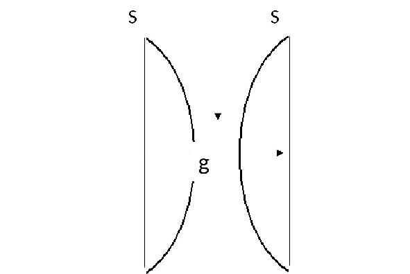 Рис. 1. Схема взаимодействия гравитона (g) с силовыми линиями (S) пространства
