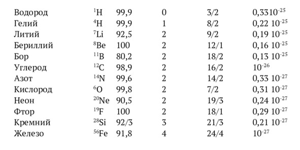 Согласно современным научным представлениям все химические элементы от гелия до урана, последнего элемента, встречающегося в естественном виде в природе, образовались в недрах звезд при их жизни или в результате их яркой «смерти», или их слияния. Ядра элементов от гелия до железа синтезируются внутри звезд, а после железа при взрывах сверхновых звезд и слияния нейтронных звезд, но механизмы образования стабильных и нестабильных звезд в обоих случаях одинаковые. В основе обоих механизмов лежит слияние α -частиц, захват нейтронов ядрами, их «вдавливание» в ядра, с последующим β—распадом ядер переполненных нейтронами. В результате β—распада нейтроны распадаются на протоны и электроны, которые затем вылетают из ядер. В итоге у ядер увеличивается заряд и они превращаются в ядра более тяжелых элементов. При этом какое местоположение займет новая частица в ядре не учитывается. Но, как известно, атомное ядро представляет собой сложную многочастичную систему с сильным взаимодействием и большим набором свойств. И от того к какой части ядра, присоединится новая частица, будет зависеть в основном или в возбужденном состоянии будет находиться новое ядро. Все элементы периодической системы имеют по несколько изотопов. Изотопы от водорода до висмута описанные в ней, находятся в стабильном состоянии. Они выделяются среди своих собратьев количеством содержащихся и расположением в их ядрах нуклонов. Эти изотопы являются самыми распространенными изотопами в природе. Остальные от полония до урана радиоактивны.
