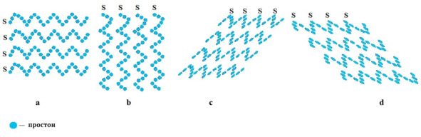 S – Силовые нити, a b c d – расположение их в различных плоскостях