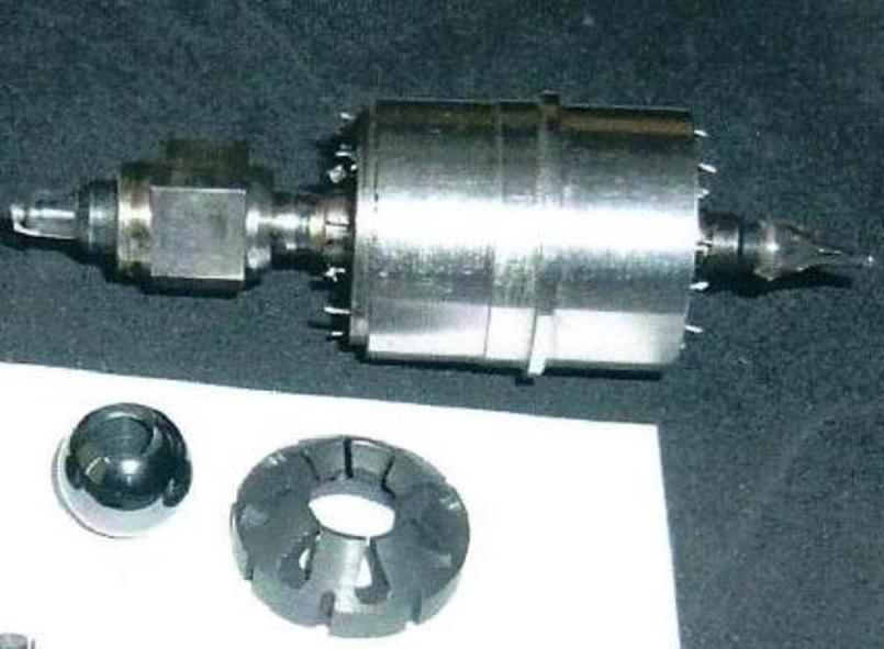 В то время я был директором малого государственного предприятия. Из всех предприятий делегация выделила нас. Их больше всего заинтересовали наши новые гироскопы с магнитным подвесом сферического ротора, один из которых показан на рисунке. Внутри корпуса гироскопа поддерживается глубокий вакуум.