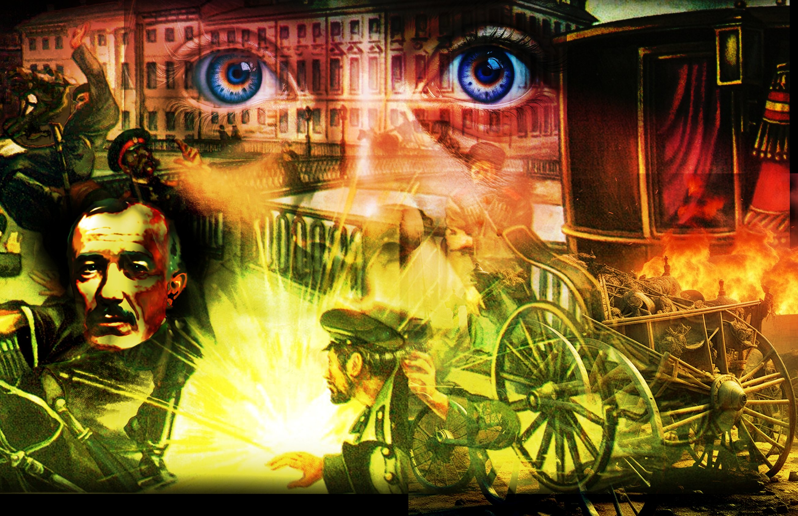 Зрелище, открывшееся ему было просто ужасающим. Развороченная взрывом карета царского сановника, прибывшего к Марии Фёдоровне с визитом, валялась на боку. Точнее, то, что осталось от кареты. В смертельной агонии бились лошади с распоротыми животами и вываленными внутренностями. Кровь! Повсюду была кровь! Весь декабрьский снег был красным от крови. Брызги её были на стенах и ступенях дворца. И трупы, … много трупов совершенно посторонних людей, случайных прохожих, волей судьбы, оказавшихся поблизости от эпицентра. В пяти метрах от него лежало растерзанное тело семилетней девочки с оторванными ногами. Женщина, видимо мать этой девчушки, была припечатана взрывной волной к стене. Её широко раскрытые мёртвые глаза, застыли в последнем смертельном ужасе. И стоны, …мучительные стоны со всех сторон. К месту происшествия на помощь уже бежали городовые и совершенно посторонние люди. Дворцовая прислуга суетилась на крыльце. Алексея корёжило в рвотных позывах, он схватился за живот, отвернулся от мёртвых тел и его буквально вывернуло наизнанку. Отныне это зрелище запечатлелось в его сознании навеки. Такого не забудешь никогда!