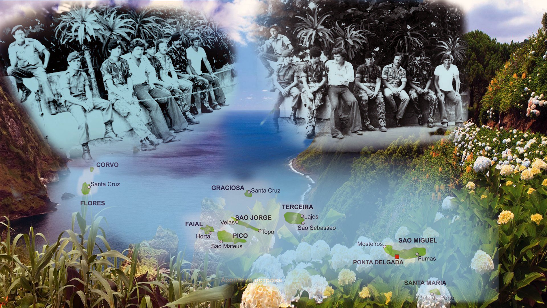 Город потихоньку приводил себя в порядок. Тут и там трудились группы горожан, устраняя последствия пронёсшегося урагана. Особо крупных разрушений моряки не заметили. Город и порт жили своей жизнью. О подавленном властями путче свидетельствовали многочисленные военные и полицейские патрули. К морякам особого внимания они не проявляли, провожая группу равнодушными взглядами. Стены домов и витрины магазинов кое-где были исписаны какими-то лозунгами на португальском языке. Бросались в глаза начертанные краской большие буквы FLA A Frente de Libertação dos Açores – латинская аббревиатура ФОА – Фронта освобождения Азорских островов. Моряки просто прогуливались по улицам города, наблюдая жизнь островитян. Валюту они истратили ещё в Сент-Джонсе, так что магазины для них тоже не представляли интереса. На руках, правда, оставалась кое-какая мелочь, но это так, на всякий случай. Бродя по узким улочкам типично португальского городка, моряки забрели в парк и заметили группу военных, расположившихся, судя по всему, на отдых. Игорю пришла в голову мысль сфотографироваться с ними на память о пребывании на Азорах. Он направился к ним быстрым шагом. Солдаты с любопытством рассматривали приближавшегося к ним моряка. Подойдя к португальским военным, Игорь на английском обратился к ним, объясняя, что они советские моряки и зашли в порт из-за урагана. Попросил разрешения сфотографироваться вместе с ними. Молодые ребята, практически ровесники Кондаурова, солдаты плохо понимали английский язык, но суть просьбы уловили и благосклонно, доброжелательно согласились попозировать.